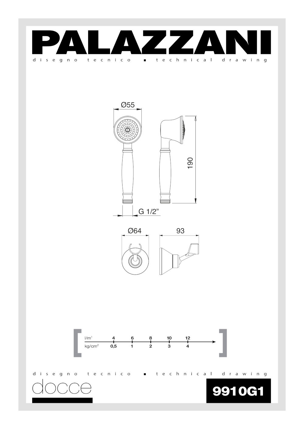 Supporto doccia orientabile in ottone 9910G1 Palazzani con flessibile da 1,5 metri e doccetta in ottone Ø 55 mm. Elegante e funzionale, offre comfort e praticità per la tua doccia quotidiana. Perfetto per un’esperienza doccia ottimale con materiali di alta qualità.